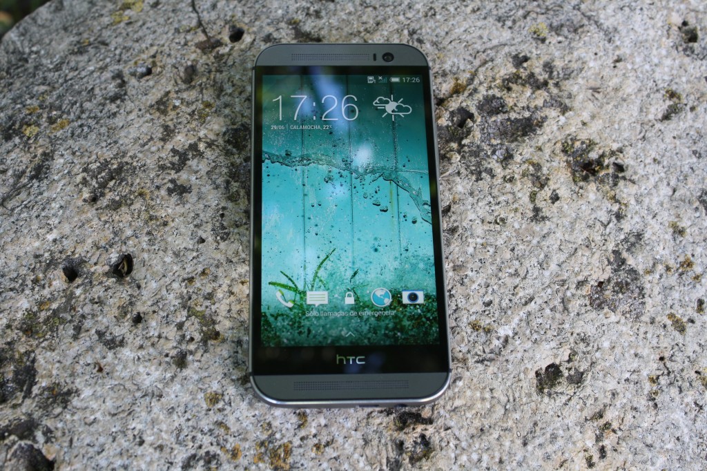 En cuanto a su diseño, no dista demasiado con el aspecto de su antecesor. Líneas rectas y terminaciones redondeadas conjugan a la perfección con su cuerpo de aluminio que le confiere un aspecto premium total. En la parte delantera, reinan los altavoces antes mencionados y una extraordinaria pantalla de 5 pulgadas. Aquí es donde vemos uno de los «peores» aspectos de este terminal. Denota una falta de aprovechamiento del espacio, ya que al incluir botones virtuales en la pantalla, el espacio que queda desde el final de la pantalla hasta el logotipo de HTC queda desaprovechado. Perfectamente podían haber aumentado la pantalla un poco mas, como hacen últimamente LG y Samsung, que poco a poco van arrimando más las pantallas a los marcos de sus dispositivos. Aunque si hablamos de la calidad de ésta, es un serio competidor para el resto. Luce de maravilla y sus colores son muy reales.