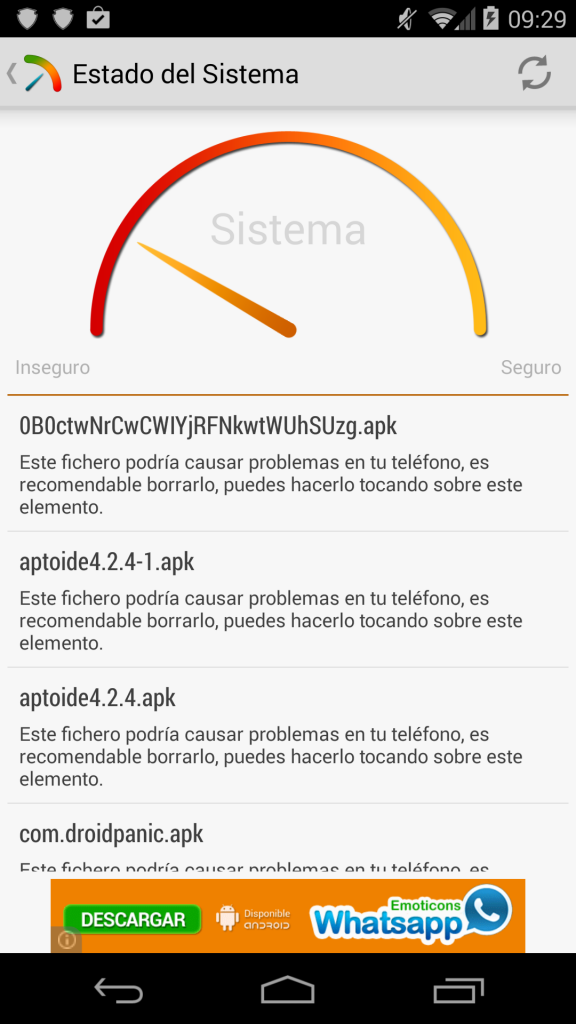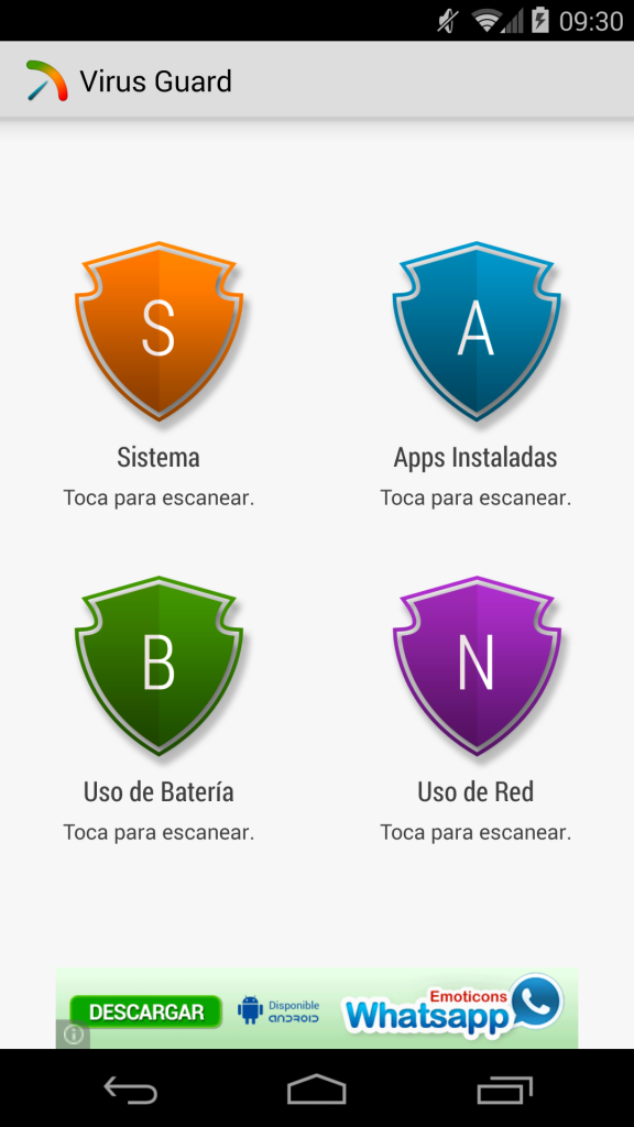 Virus Guard tiene un menú principal para mostrar 4 diferentes opciones donde dos de ellas, Sistema y Apps Instaladas, escanearán nuestro dispositivo en busca de posibles amenazas. Por ejemplo, detecta si tenemos activada la opción de Orígenes desconocidos, avisándonos que por ahí puede entrar cualquier amenaza. También analiza todas las aplicaciones que vayamos actualizando, e incluso aquellas que Google actualiza sin avisar, como las de Google Play Movies y otros de sus servicios.