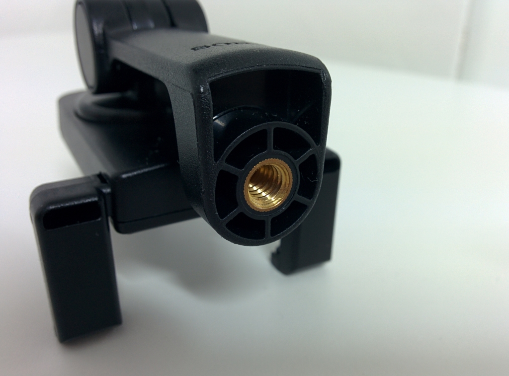 Hablando del trípode en sí, el material utilizado es plástico muy resistente con una grata sensación de robustez. El accesorio está compuesto por dos partes, la parte donde va agarrado el teléfono y las patas. Quizás le falte algo de peso o algo más de grip en estas últimas, pero aún así está dotado de una gran estabilidad. Ambas partes van enganchadas mediante un tornillo estándar que podemos ver en cualquier otro trípode que se utiliza para fotografía. Aquí es donde viene nuestra sorpresa, puesto que hemos podido comprobar con nuestros trípodes de cámara que la parte donde se engancha el terminal, podemos montarla a unas patas de un trípode normal, por lo que podremos utilizar nuestro teléfono a modo de cámara, y más si disponemos de cámaras ya algo desfasadas. Esta parte de arriba puede soportar dispositivos algo más grandes que un LG G2 y tiene la capacidad de rotarse 360º y también de girarse para enfocar hacia arriba y hacia abajo.