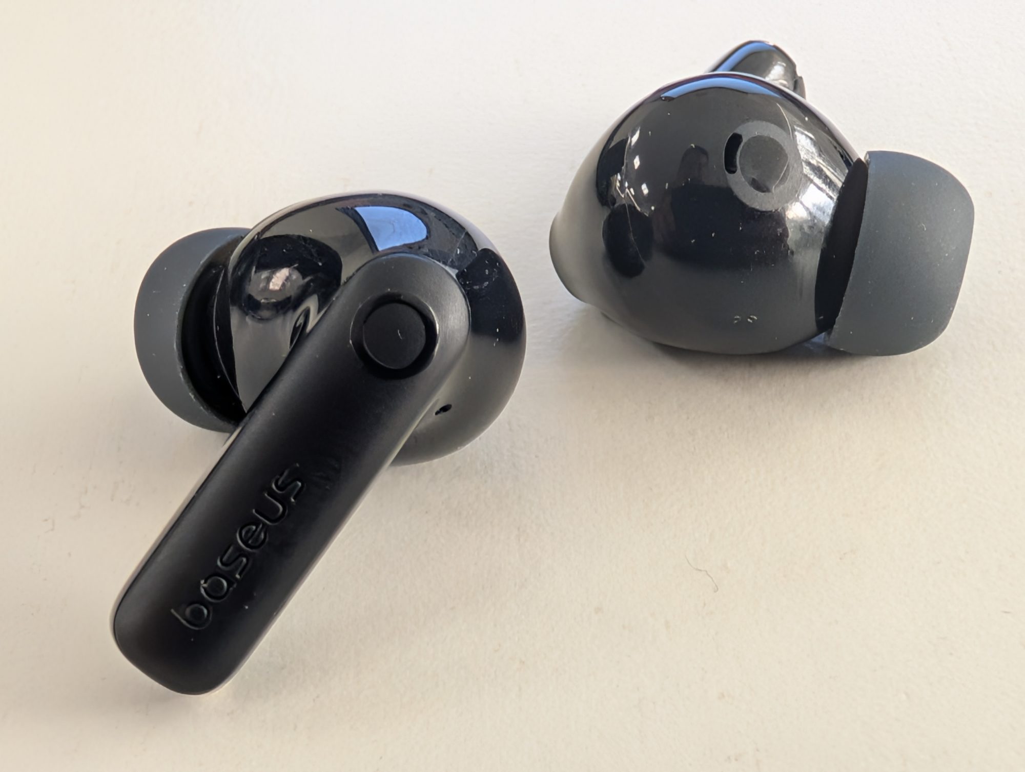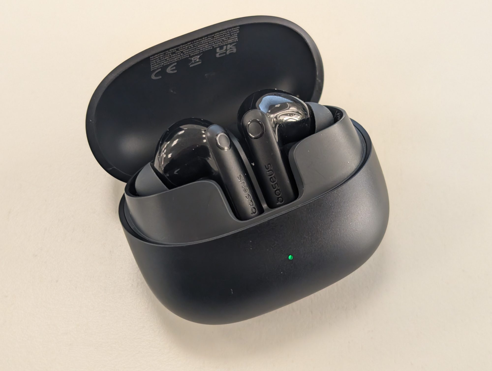 Aunque están fabricados en plástico, la sensación en mano no es para nada barata. El acabado está muy bien trabajado, las líneas son limpias y el estuche tiene ese toque de producto cuidado que solemos ver en gamas más altas. No vas a sentir que llevas un gadget “low-cost”, y eso ya es un plus enorme. Baseus ha puesto mimo en el diseño, y se nota.