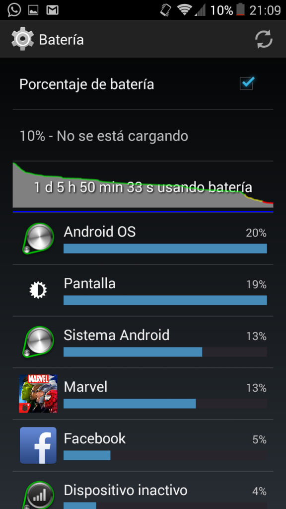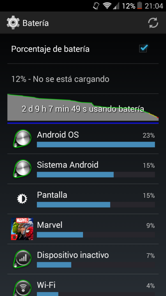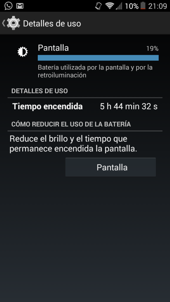 La batería también ha «sufrido» un incremento en su capacidad, llegando hasta los 2850mAh. Parece que los 2500mAh que acompañaban a los anteriores E5 no eran suficientes, por lo que bq ha optado en aumentar la batería, que además, junto con el procesador Qualcomm, llega a tener una de las mejores autonomías que hemos podido tener en Droid Panic, llegando hasta los dos días de autonomía con un uso moderado, o con un uso algo más intensivo a pasar el día tranquilamente (jugando y demás) con casi 6 horas de pantalla activa, aunque uno de los días nos llegó ha hacer hasta 7 horas. Un monstruo.