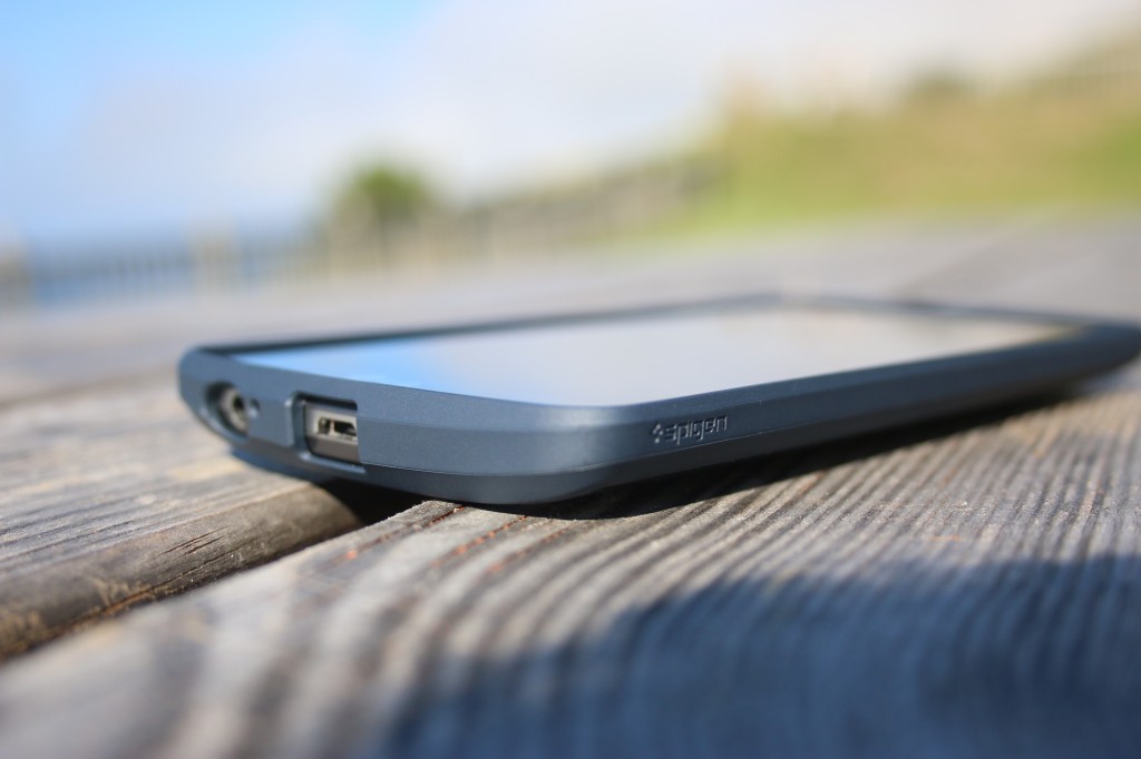 La funda Spigen SGP Ultra Hybrid está disponible en más colores: negro, gris y azul turquesa. Este último es una «novedad» en cuanto a colores se refiere de este tipo de fundas. No la pedimos en azul turquesa, ya que creímos que era algo demasiado atrevido… Aún así, debemos decir que la Ultra Hybrid se adapta al teléfono como un guante y que se ve que aporta la protección necesaria por si se nos cae. Esta funda en sus esquinas cuenta con un colchón pequeño de aire precisamente para eso, para que si se caiga amortigüe de alguna manera el golpe, algo que se agradece y muy mucho.