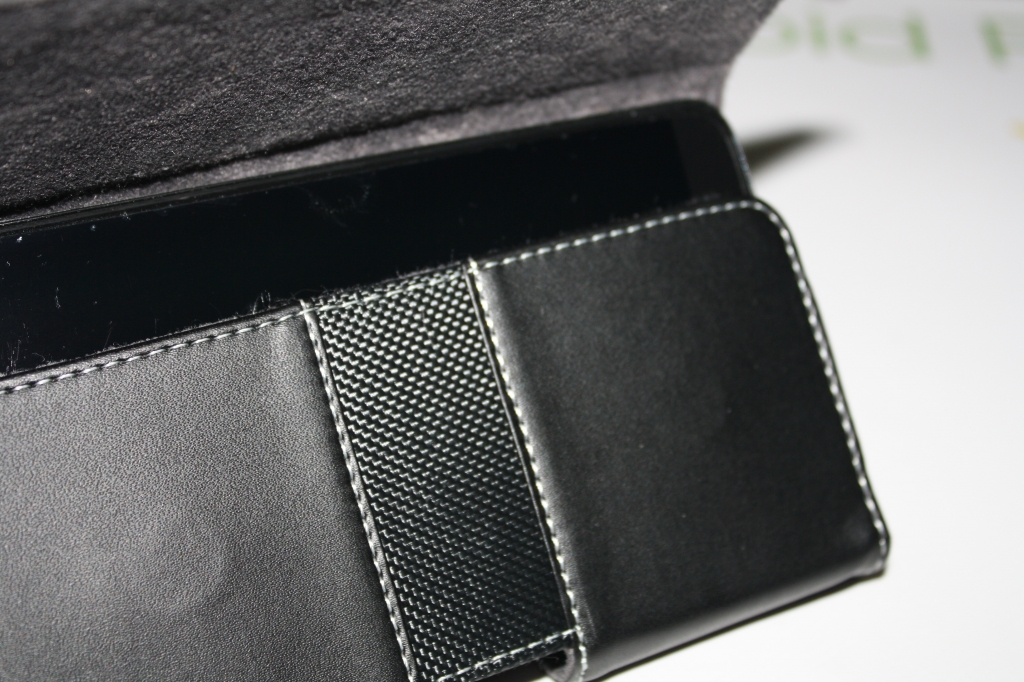 En este caso, hemos querido probar la funda con un LG G2, ya que aunque esta es universal también tiene sus límites en cuanto a sus medidas. En el caso del LG G2 la funda se ajusta realmente bien y su tapa cierra a la perfección gracias a un clip que la sujeta y evita que nuestro smartphone salga por los aires con algún salto. En cuanto sacamos la funda de su paquete, desprende calidad por los cuatro costados, su fabricación es en polipiel negra con un tacto muy muy suave y que combina perfectamente con su estilo, ya que es una funda elegante donde las haya. En cuanto a su interior, este totalmente forrado de un material aterciopelado que protegerá nuestro teléfono de cualquier imprevisto. Se ajusta perfectamente a cualquier cinturón de tamaño normal, y una vez enganchado queda totalmente sujeto, aunque si que nos da cierta libertad de movimiento ya que su pinza es giratoria.