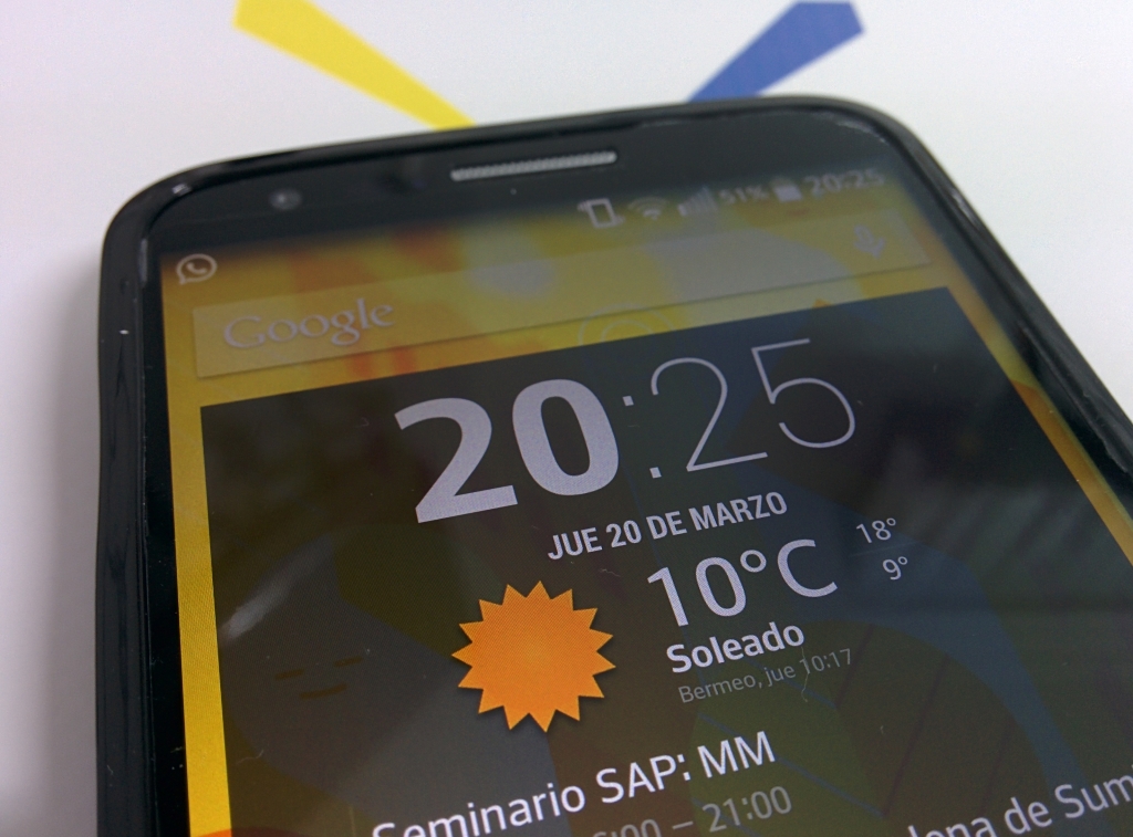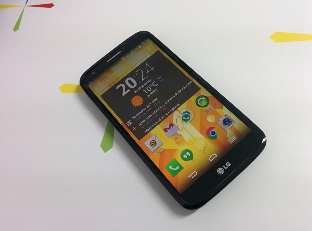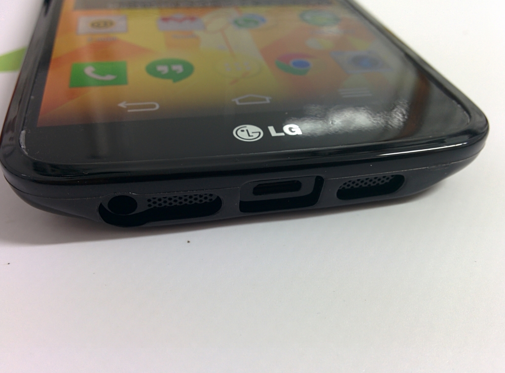 Esta funda en particular, de color negro, hace que parezca más recogido el LG G2, dando la sensación de que el dispositivo se hace algo más pequeño, pero no. Se ajusta perfectamente a la silueta del teléfono y además sobresale un poco por la parte delantera para que, en caso de dejar el G2 boca abajo, la pantalla no se vea comprometida y en un descuido se arrastre y se dañe.