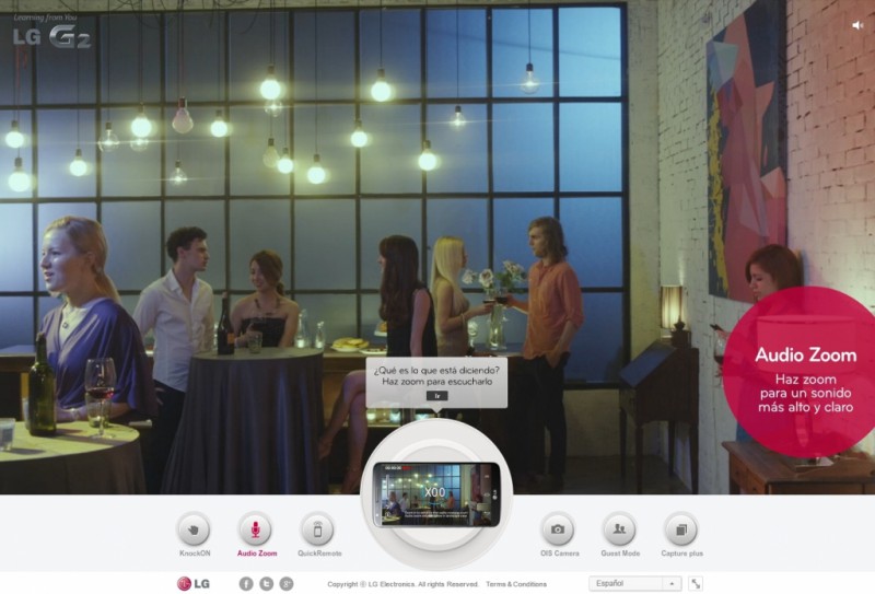 El evento ‘Play & Share LG G2’ estará online hasta el 11 de septiembre en la web http://g2-event.LGmobile.com. Esta página está disponible en siete idiomas: español, inglés, francés, portugués, chino, japonés y coreano.