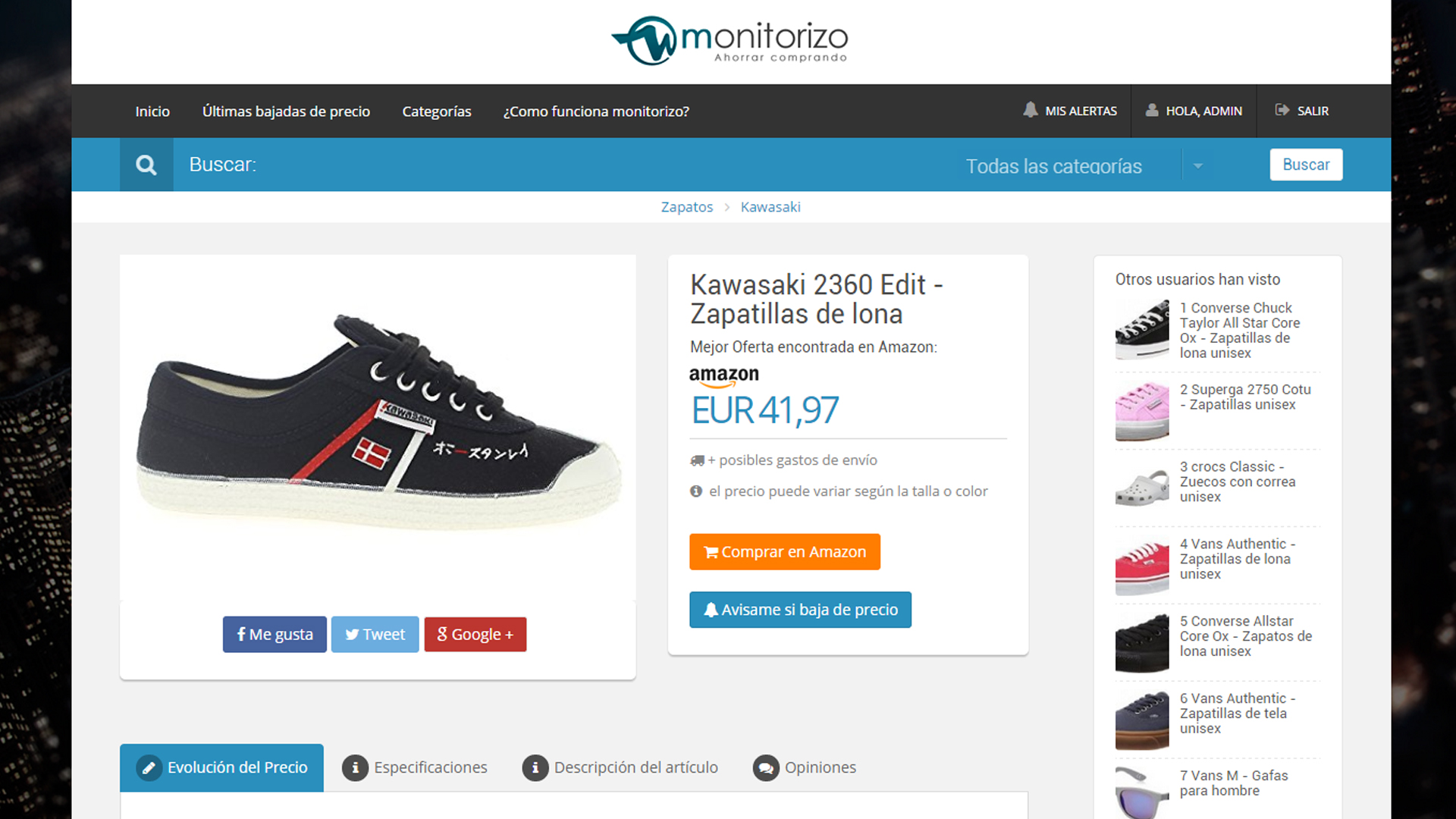 No obstante, muchas veces nos perdemos en su gran inmensidad y no sabemos cómo encontrar un producto, y si lo hacemos, quizás nos parezca algo caro. Por eso quiero hacer la presentación de una nueva web o una nueva herramienta que nos permitirá estar al tanto de todo lo respectivo a un producto que nos interese. Se llama Monitorizo, una herramienta muy sencilla de utilizar que nos ayudará muchísimo a hacer el seguimiento de aquel producto que queramos comprar más adelante. Haciéndonos un usuario de forma gratuita, podremos saber en todo momento el precio de un producto en concreto. Es decir, nos informará periódicamente del valor del producto mediante cifras, gráficas, etc… para tenerlo todo de forma visual y fácil de analizar.