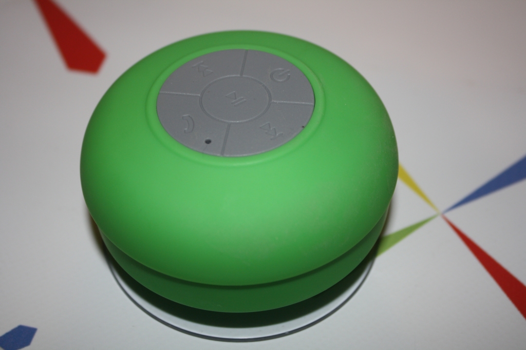 Su tacto es gomoso y muy suave, y para dejarlo fijo en algún lugar cuenta con una ventosa muy potente, características muy a tener en cuenta, ya que como hemos comentado es perfecto para reproducir nuestra música preferida mientras nos duchamos, con lo que la goma nos ayudará a que no se nos resbale de las manos aún con ellas mojadas. Su funcionamiento es realmente sencillo, tan solo tendremos que encenderlo con el botón superior que se encuentra en la parte central del altavoz, donde también podremos encontrar los controles para el reproductor de música y un botón para poder atender una llamada telefónica, ya que también es capaz de ello. La conexión a con nuestro smartphones es a la que nos acostumbra ya el sistema Bluetooth, manteniendo presionado el botón de encendido, habiendo conectado el bluetooth de nuestro terminal, en este nos aparecerá un nuevo accesorio, lo aceptaremos y ya estará listo para reproducir música. Su sonido es potente y limpio, así que no tendremos nada que temer por el ruido del agua generado en la ducha, puesto que hemos comprobado que se oye perfectamente.