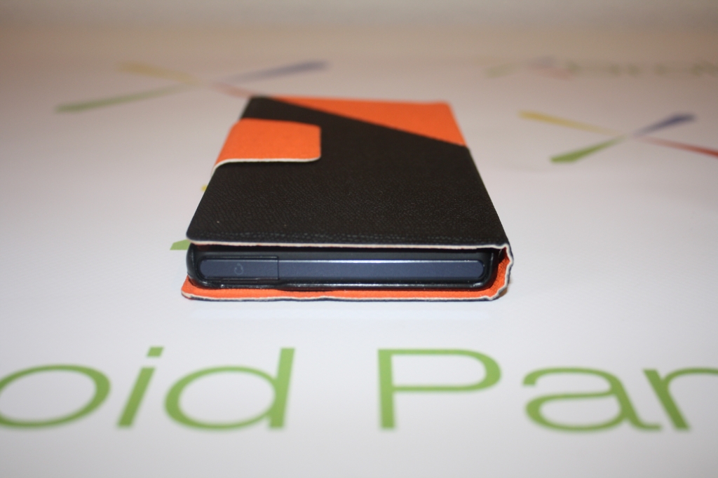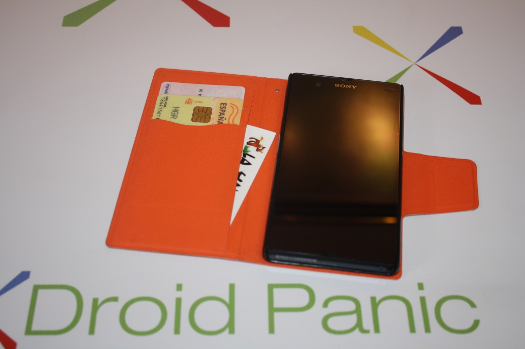 La funda en cuestión viene en dos colores, negro y naranja, lo cual le da un aire moderno y juvenil que para nada estropea el diseño de nuestro móvil. Además de la protección contra golpes, esta funda nos brinda la posibilidad de darle un segundo uso como cartera, ya que disponemos de dos tarjeteros frontales y una pequeña billetera detrás. Una vez colocada la funda, como es lógico, engordará un poco nuestro terminal, pero ¿qué son unos pocos milímetros a cambio de una protección total? Es práctica, cómoda y muy versátil, por que como podréis ver en la siguiente galería de fotos, también disponemos de un sistema por el cual se puede plegar la parte trasera de la funda, permitiéndonos poner el móvil en apaisado y ofreciéndonos poder visionar vídeos o fotos sin necesidad de aguantar este con la mano.