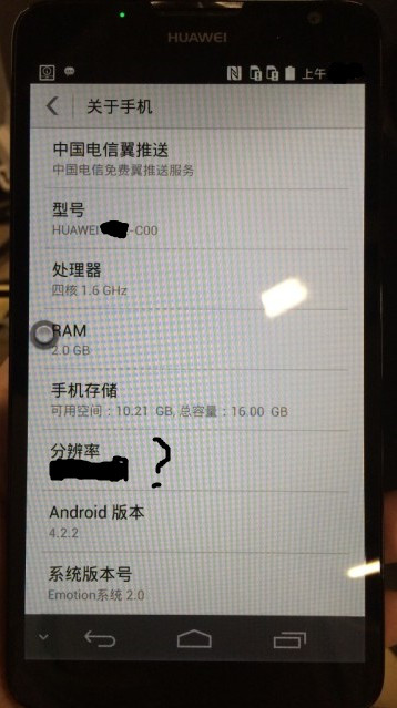 También podemos ver, en una de las fotografías filtradas, que la versión Android que lleva instalada es Jelly Bean 4.2.2, aunque esperemos que este dato no se confirme y se presente ya con lo último que le puede ofrecer Google y su exitoso sistema operativo, como capa de personalización, parece que Huawei sigue confiando en su Huawei Emotion, el cual hay que reconocer que para nada es intrusivo y que se mueve con suficiente agilidad.